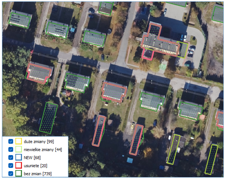 - „obiekt nowopowstały” - wykryty obiekt nie występuje w bazie BDOT10k,