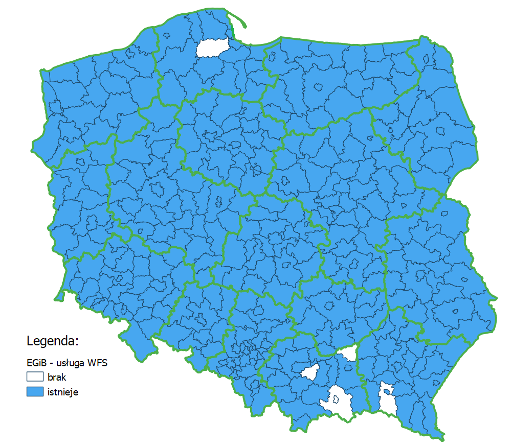 Już tylko 7 z 385 jednostek prowadzących ewidencje gruntów i budynków nie posiada własnej usługi WFS dotyczącej tych danych