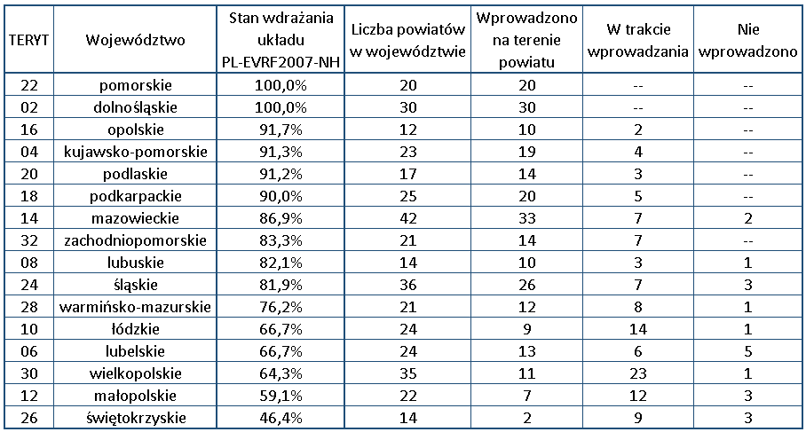 Kolejne powiaty zakończyły wdrażanie układu PL-EVRF2007-NH