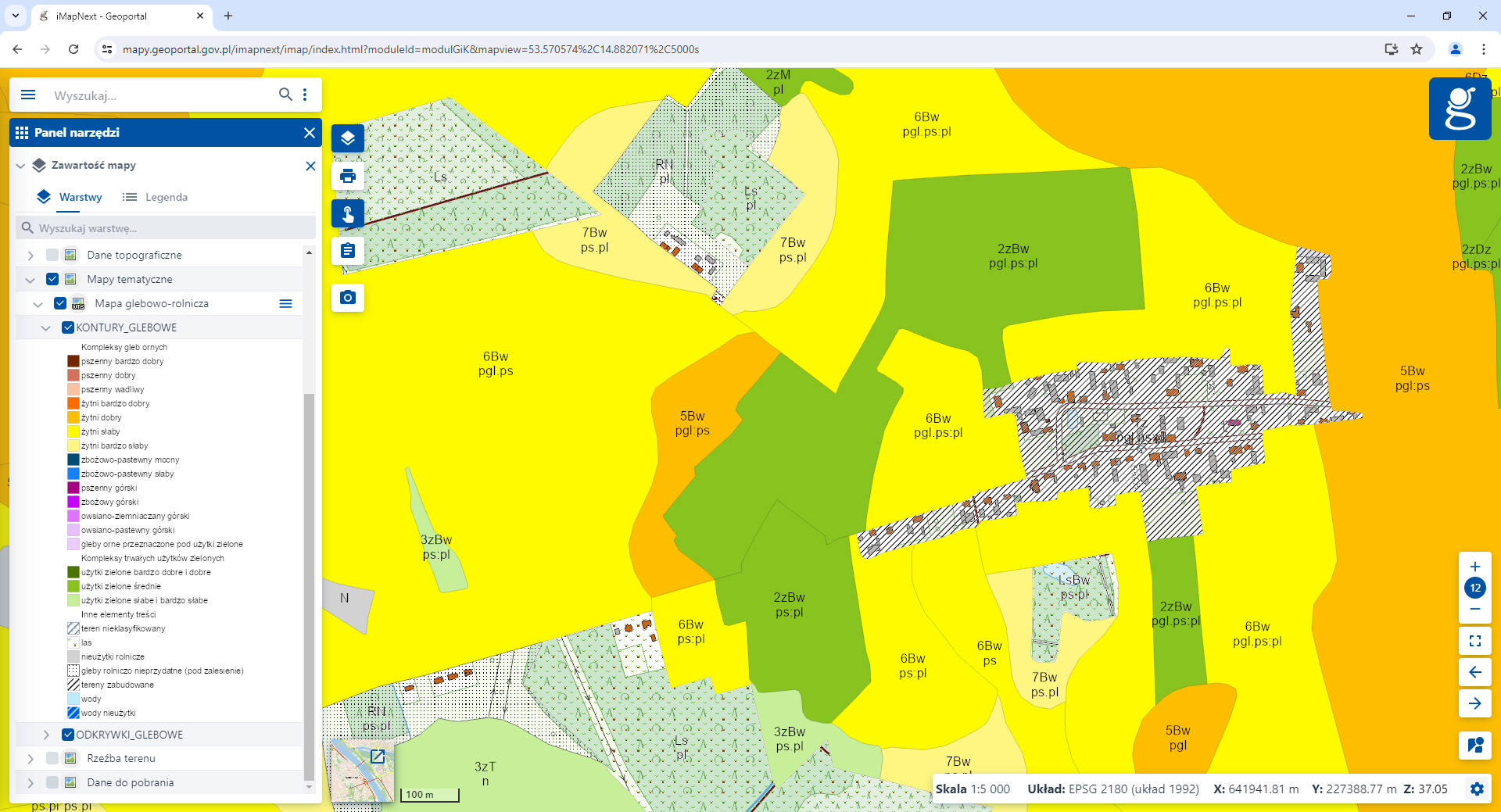 Główny Urząd Geodezji i Kartografii w ramach prac własnych wykonał konwersję do nowego schematu aplikacyjnego GML wektorowej mapy glebowo-rolniczej w skali 1:5 000 dla części obszaru województwa zachodniopomorskiego (oprócz m. Koszalin i m. Szczecin) oraz dla części województwa świętokrzyskiego (bez m. Kielce). Mapy zostały pozyskane z Urzędu Marszałkowskiego.