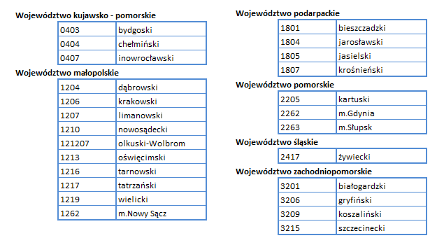 Dla powiatów wykorzystujących oprogramowanie Geomatyki-Kraków, które nie mogą sobie poradzić z uruchomieniem własnej usługi WFS, w ramach porozumienia z powiatami odpowiednie usługi przygotował Główny Geodeta Kraju. Wykaz tych usług przedstawiono poniżej: