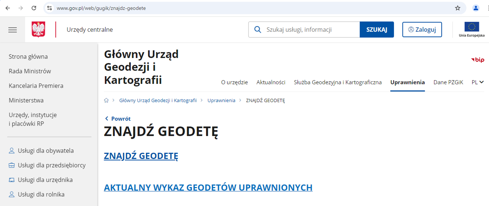 Przypominamy również, że pod adresem https://znajdzgeodete.gugik.gov.pl/ dostępna jest również nowa wyszukiwarka umożliwiająca wyszukiwanie geodetów uprawnionych.