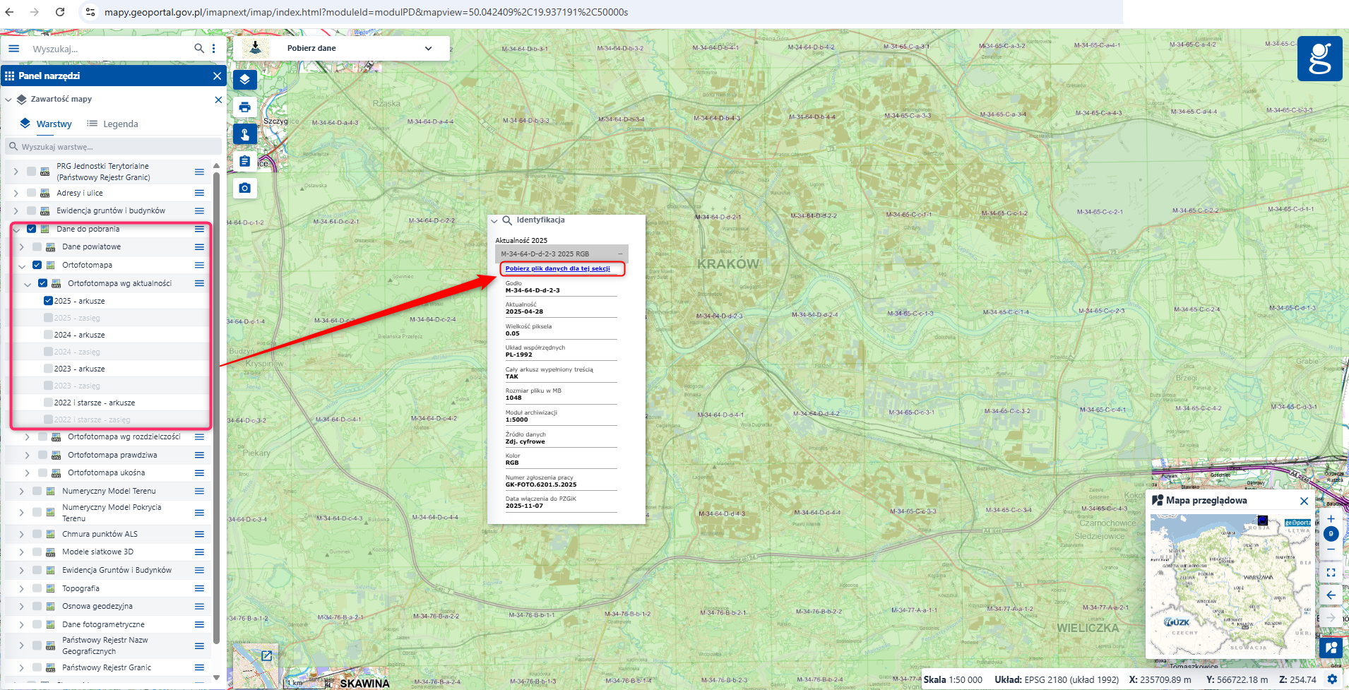 - obrazy intensywności o terenowym rozmiarze piksela 0,25 m,