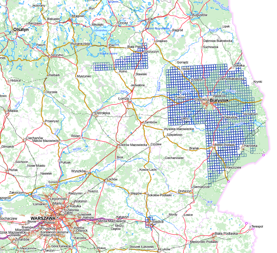 - dla części obszaru województwa podlaskiego, o powierzchni około 5 962 km2
