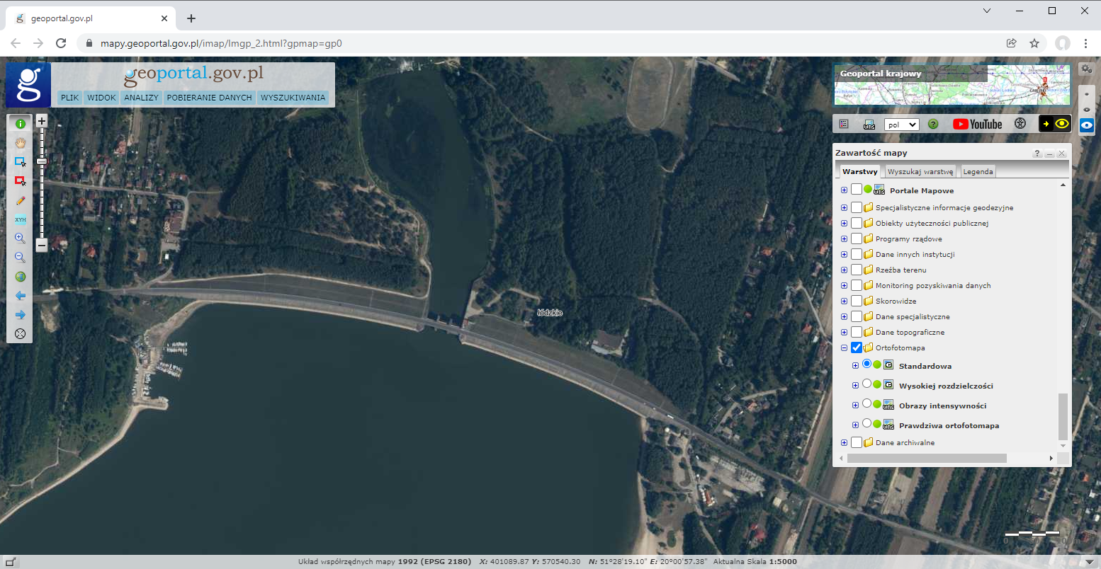 - ortofotomapa w przestrzeni barwnej RGB/CIR o pikselu 0,25 m;