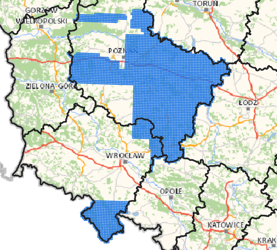 Szczegółowy zasięg nowo przyjętych danych przedstawiono na poniższej ilustracji: