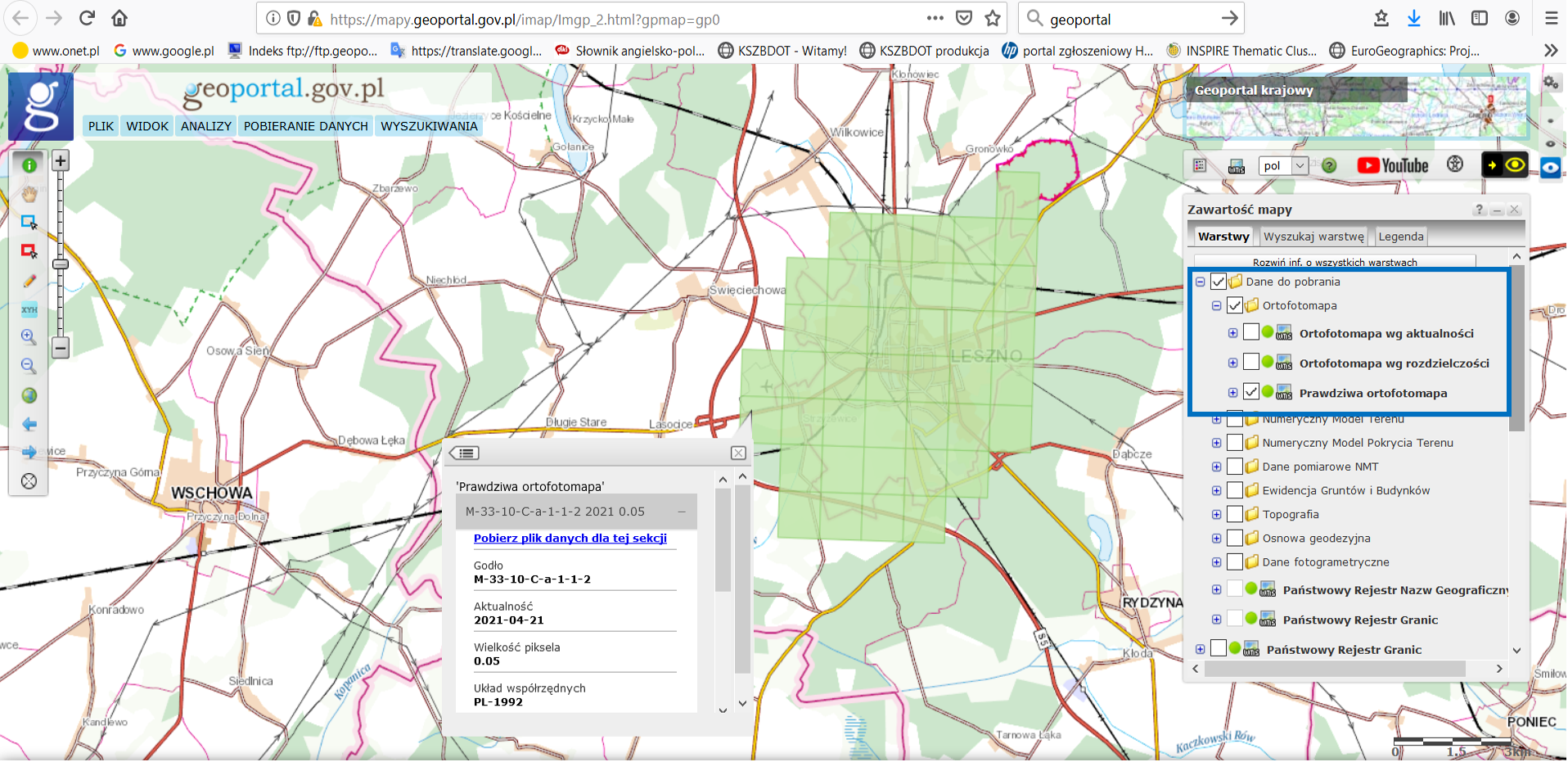 Nowo przyjęte dane można bezpłatnie pobrać do powszechnego wykorzystania poprzez usługi WCS i skorowidze publikowane w serwisie www.geoportal.gov.pl.