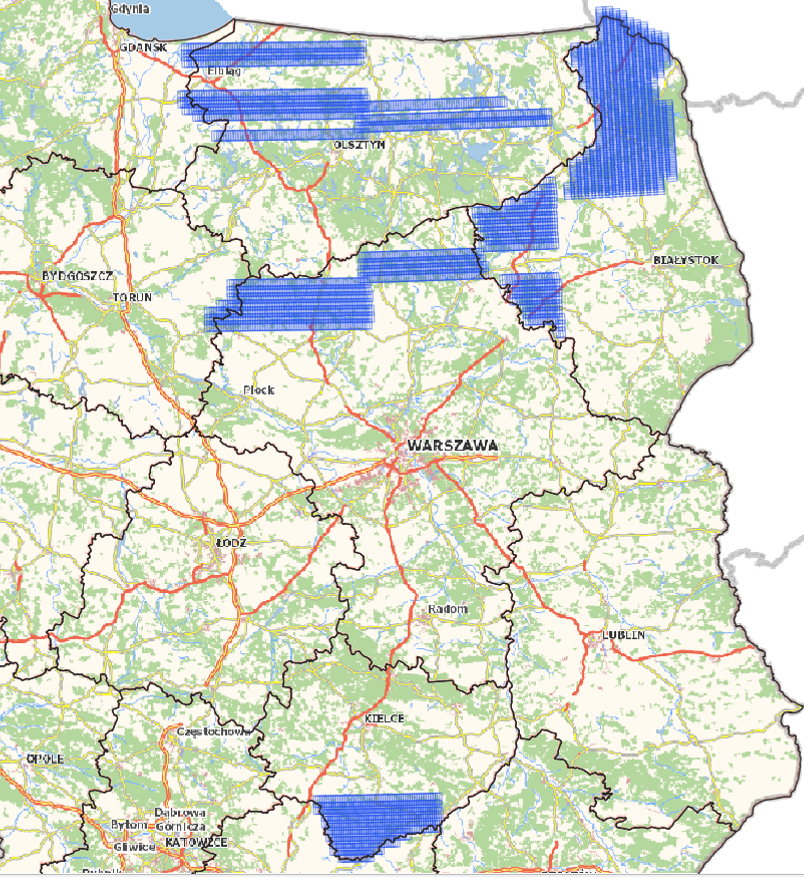 i świętokrzyskiego o łącznej powierzchni około 19 000 km2 i terenowym rozmiarze piksela 0.25 m. Prace zostały zrealizowane na zlecenie Agencji Restrukturyzacji i Modernizacji Rolnictwa.