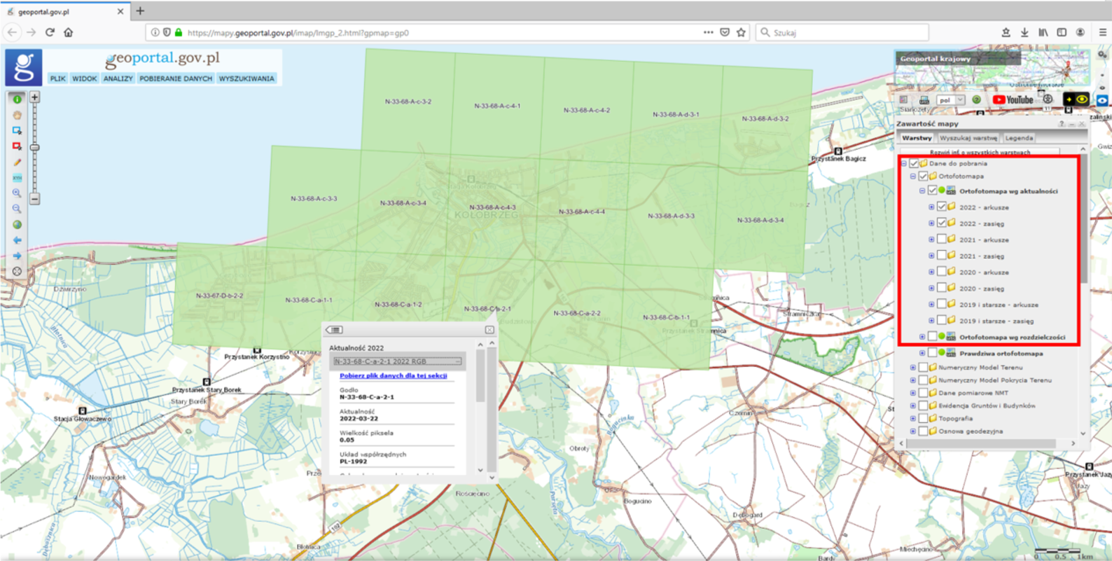 Nowo przyjętą ortofotomapę i dane wysokościowe do powszechnego wykorzystania można bezpłatnie pobrać poprzez usługi WCS i skorowidze dostępne w serwisie www.geoportal.gov.pl.