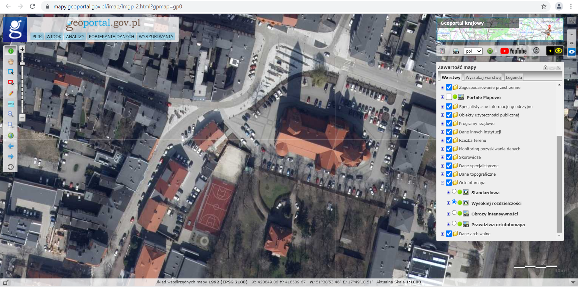 - ortofotomapa o pikselu 0.10 m,