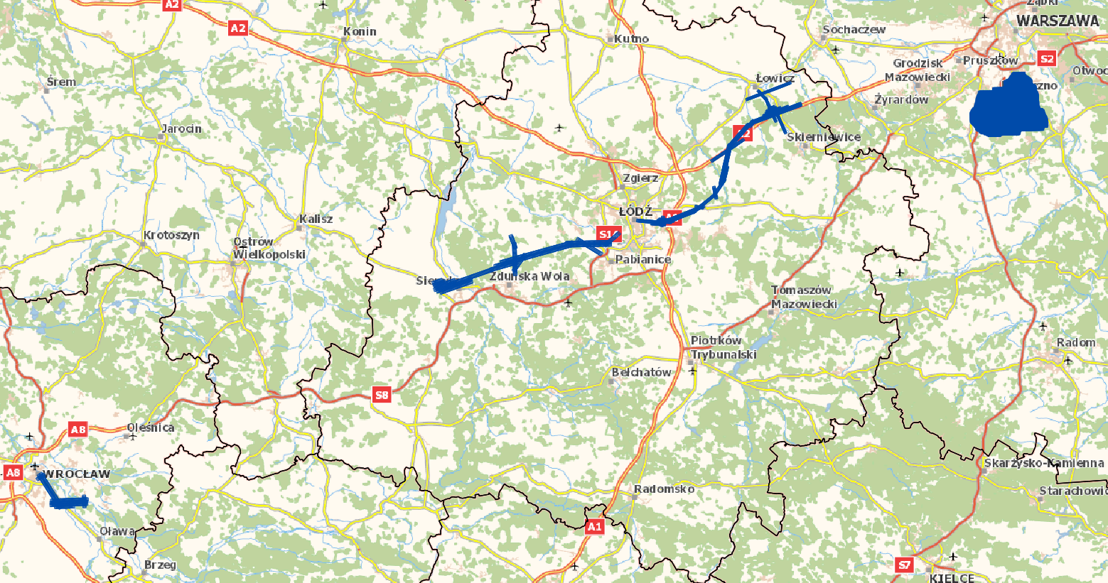 - Centralnego Portu Komunikacyjnego w Sieradzu o powierzchni około 123 km2 o terenowym rozmiarze piksela 0,04 m.