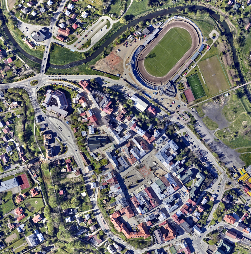 - Zdjęcia lotnicze i ortofotomapie o terenowym rozmiarze piksela 5cm;