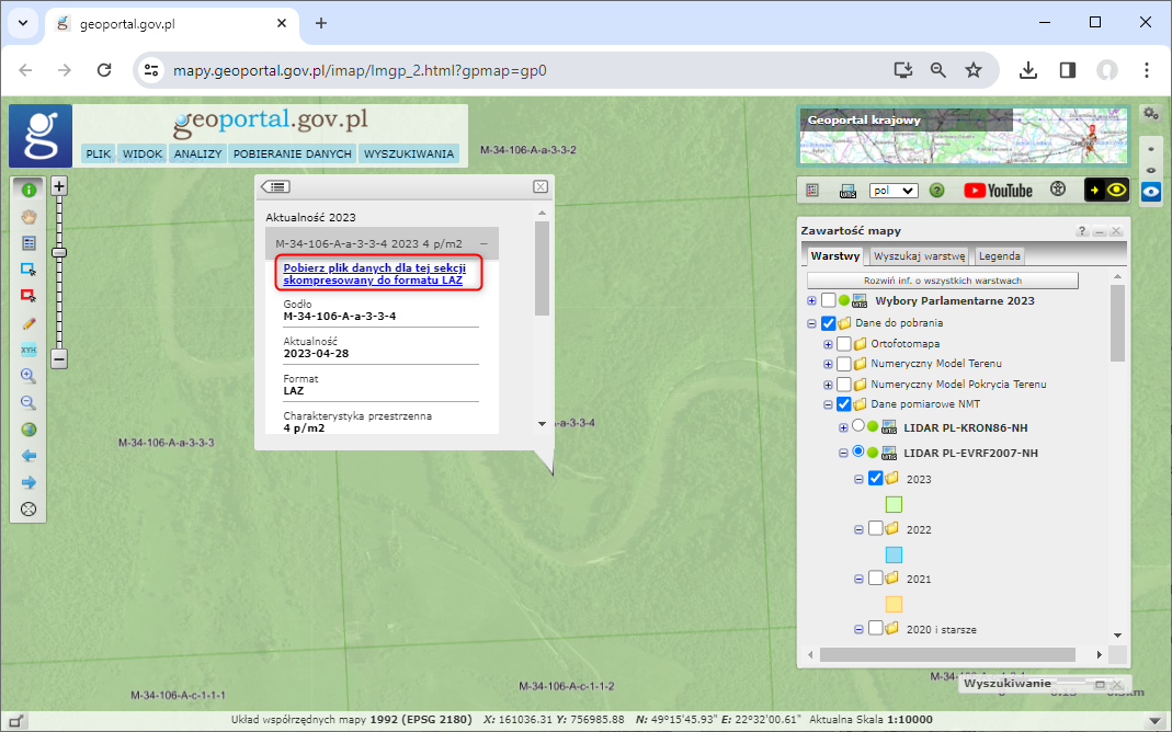 Wszystkie powyższe dane można pobrać bezpłatnie za pomocą skorowidzów dostępnych w serwisie www.geoportal.gov.pl w grupie warstw „Dane do pobrania” lub za pomocą usług pobierania WFS i WCS.