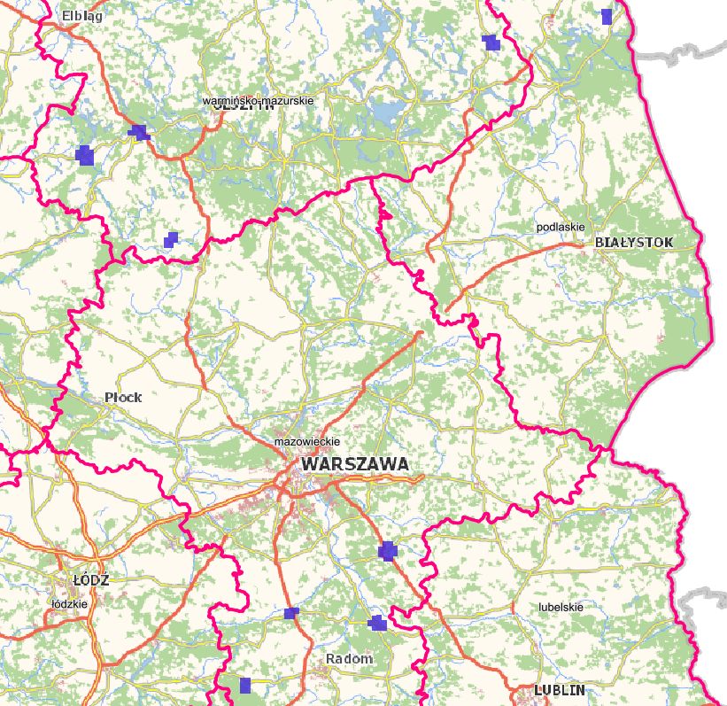 - 6 miast w województwie mazowieckim (Garwolin, Kozienice, Białobrzegi, Przysucha);