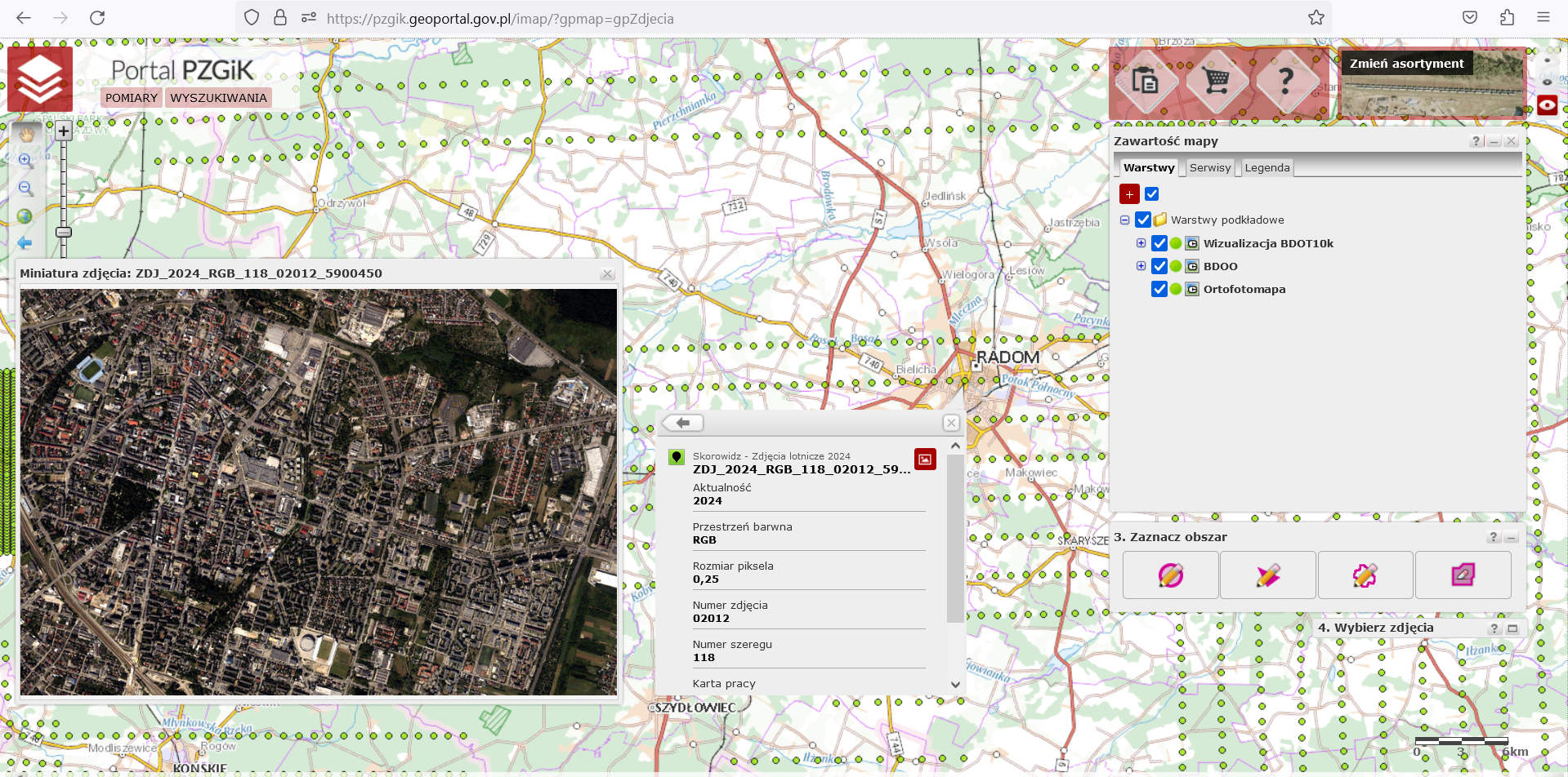 Zasięgi tych zdjęć oraz ich podgląd dostępny jest w serwisie www.geoportal.gov.pl w grupie warstw „Skorowidze” -> „Zdjęcia lotnicze”. Zdjęcia udostępniane są odpłatnie, można je zakupić przez portal PZGiK składając stosowny wniosek.