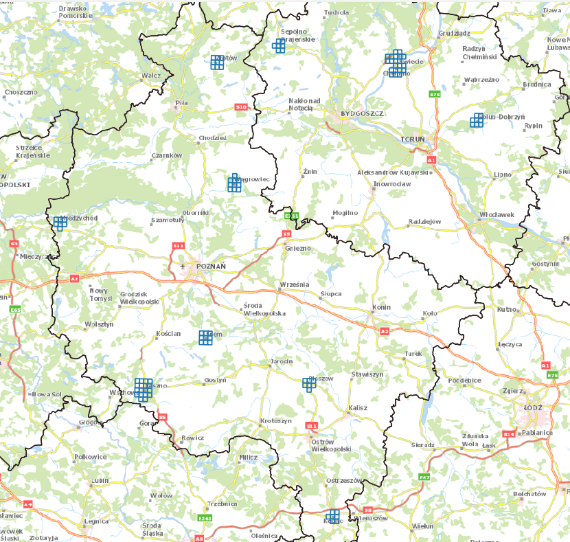 o powierzchni około 400 km2 dla miast: Międzychód, Śrem, Leszno, Pleszew, Kępno, Wągrowiec, Sępólno Krajeńskie, Chełmno, Świecie, Golub – Dobrzyń, dla których opracowano: