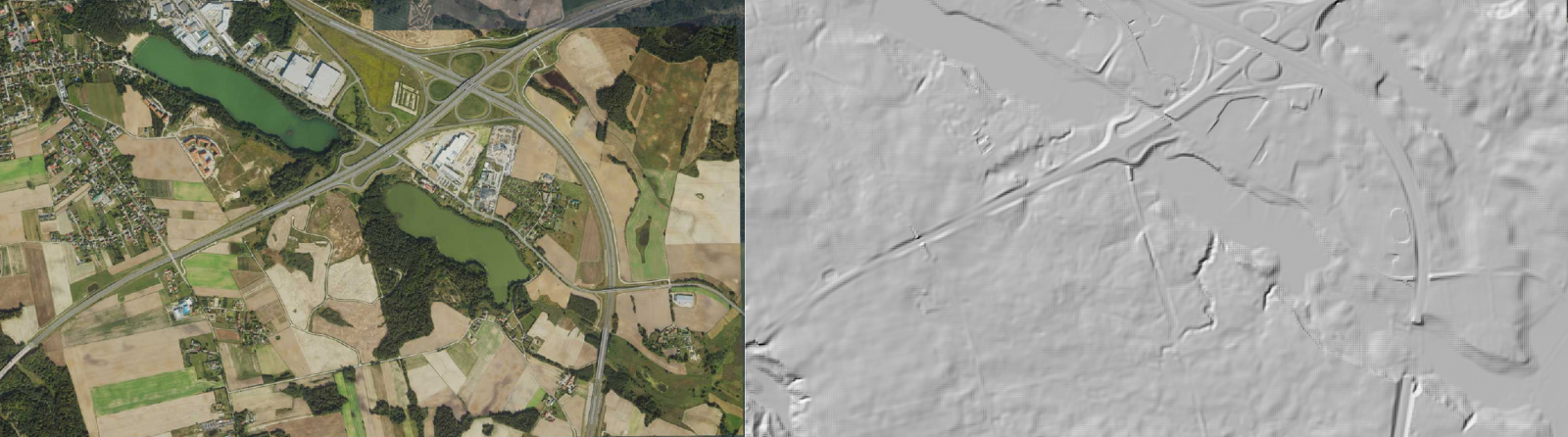 1. ortofotomapę klasyczną RGB i CIR z 2024 , o terenowym rozmiarze piksela 0,25 m oraz numeryczny model terenu o interwale siatki 1 m i 5 m (PL-EVRF2007-NH), o powierzchni około 26129 km2, wykonane na zlecenie Agencji Restrukturyzacji i Modernizacji Rolnictwa.