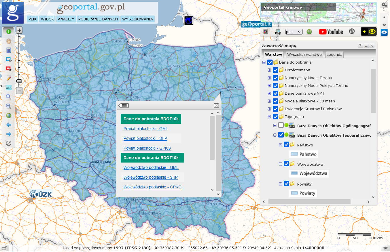Wychodząc naprzeciw użytkownikom w serwisie www.geoportal.gov.pl udostępniliśmy nowe możliwości pobierania danych BDOT10k.