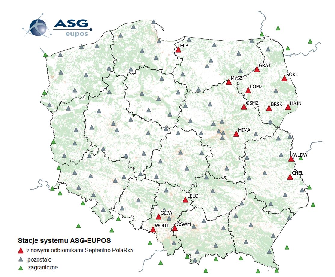 zostały uruchomione nowoczesne odbiorniki GNSS Septentrio PolaRx5, umożliwiające śledzenie wszystkich dostępnych sygnałów satelitarnych (w tym Beidou III generacji) oraz wykorzystanie ich w generowaniu serwisów systemu ASG-EUPOS. Nowe odbiorniki zostały zainstalowane na stacjach referencyjnych, które nie śledziły do tej pory Beidou III generacji. Dzięki temu obecnie wszystkie stacje GUGiK są wyposażone w odbiorniki, które umożliwiają śledzenie wszystkich dostępnych sygnałów satelitarnych. Zainstalowane odbiorniki umożliwiają również analizę widma, co ułatwia wykrywanie zakłóceń sygnałów satelitarnych.