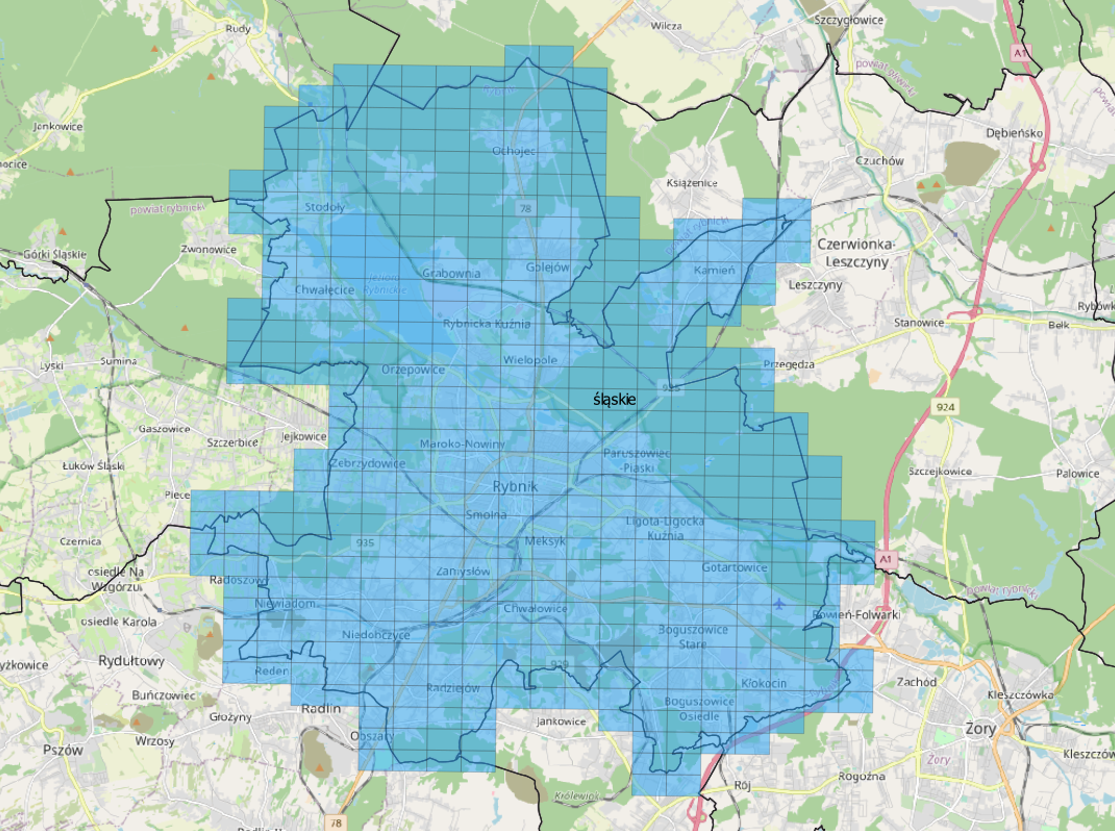 Do Państwowego Zasobu Geodezyjnego i Kartograficznego przyjęliśmy ortofotomapę dla miasta Rybnik (484 sekcji) o pikselu 0.05 m w układzie 2000. Dane zostały wykonane na zlecenie Urzędu Miasta Rybnik.