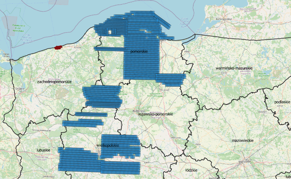 Do Państwowego Zasobu Geodezyjnego i Kartograficznego przyjęliśmy kolejne zdjęcia lotnicze z 2021 roku dla części województwa pomorskiego i wielkopolskiego (4951 sztuk) o terenowym rozmiarze piksela 0.25 m wykonane na zlecenie Agencji Restrukturyzacji i Modernizacji Rolnictwa oraz zdjęcia lotnicze dla Miasta Kołobrzeg o terenowym rozmiarze piksela 0.05 m (2056 sztuk) zrealizowane na zlecenie Urzędu Miasta Kołobrzeg.