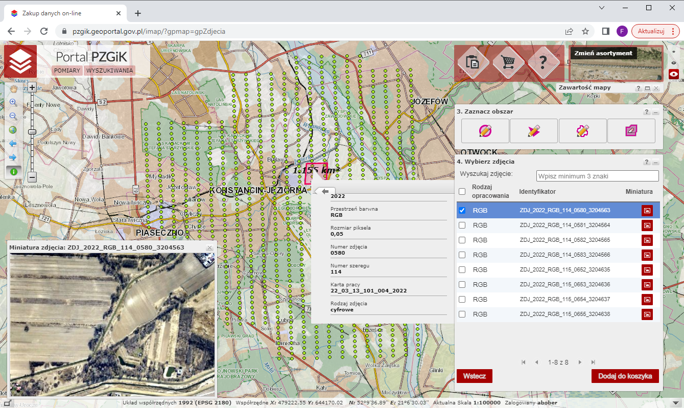 Do Państwowego Zasobu Geodezyjnego i Kartograficznego przyjęliśmy nowe zdjęcia lotnicze dla m. Konstancin-Jeziorna (1057 sztuk) wykonane w 2022 roku, o terenowym rozmiarze piksela 0.05 m. Prace zostały zrealizowane na zlecenie Urzędu Gminy Konstancin-Jeziorna.