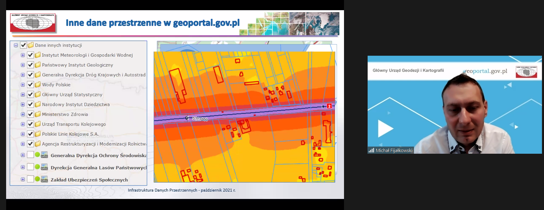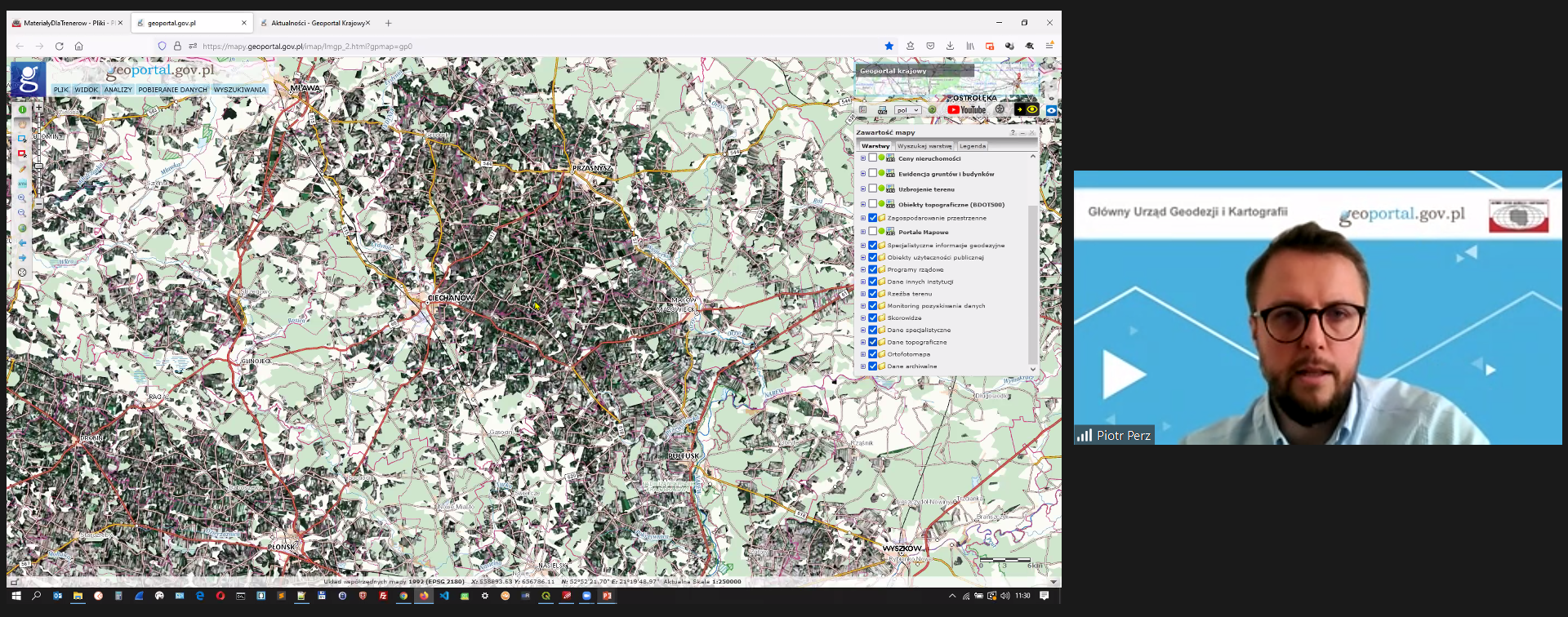 Uczestnicy zdalnego szkolenia mogli zapoznać się z wykorzystaniem Geoportalu w systemach informatycznych wspomagających zarządzanie biznesem. Ponad czterogodzinną wideokonferencję rozpoczął Jarosław Zembrzuski, Dyrektor Departamentu Informatyzacji i Rozwoju Państwowego Zasobu Geodezyjnego i Kartograficznego.