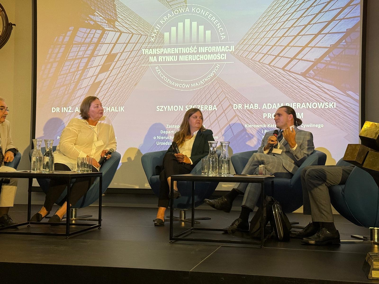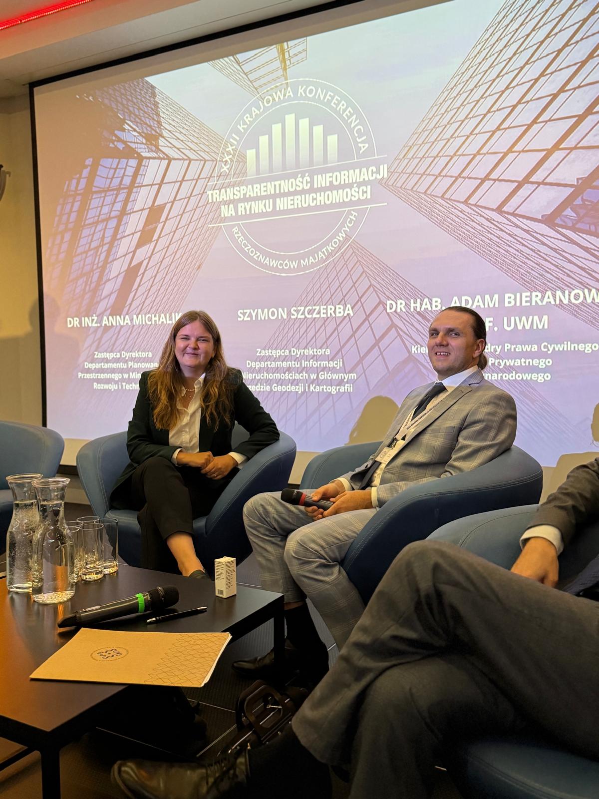 Pod honorowym patronatem Głównego Geodety Kraju odbyła się w Olsztynie 4-5 września 2025 r. XXXII Krajowa Konferencji Rzeczoznawców Majątkowych, której hasło przewodnie brzmiało „Transparentność informacji na rynku nieruchomości”. Podczas konferencji w panelu dyskusyjnym moderowanym przez dr hab. Iwonę Foryś, prof. US oraz prof. dr hab. inż. Ryszarda Cymermana wziął udział Zastępca Dyrektora Departamentu Informacji o Nieruchomościach GUGiK Szymon Szczerba. Uczestniczyli w nim również dr Anna Michalik, Zastępca Dyrektora w Departamencie Planowania Przestrzennego w Ministerstwie Rozwoju i Technologii, a także dr hab. Adam Bieranowski, prof. UWM.