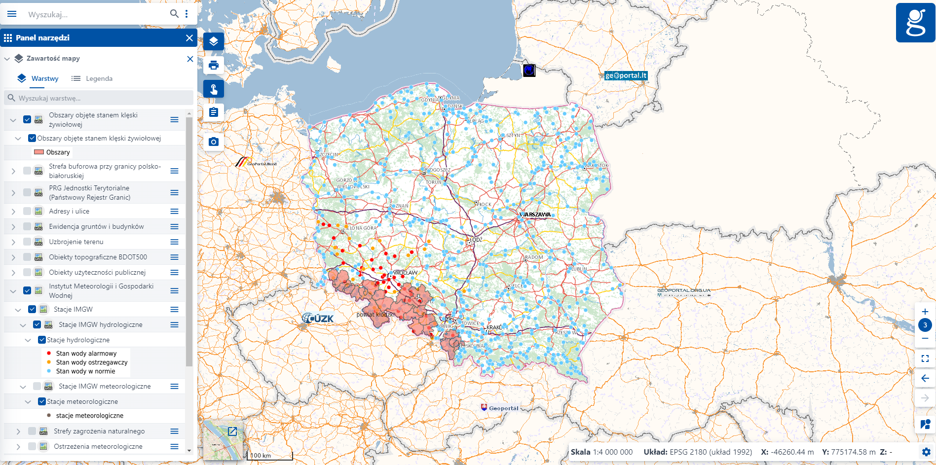 Z uwagi na trudną sytuację meteorologiczno-hydrologiczną w Polsce, udostępniliśmy w nowej kompozycji mapowej 'Zarządzanie kryzysowe' dwie kluczowe usługi :