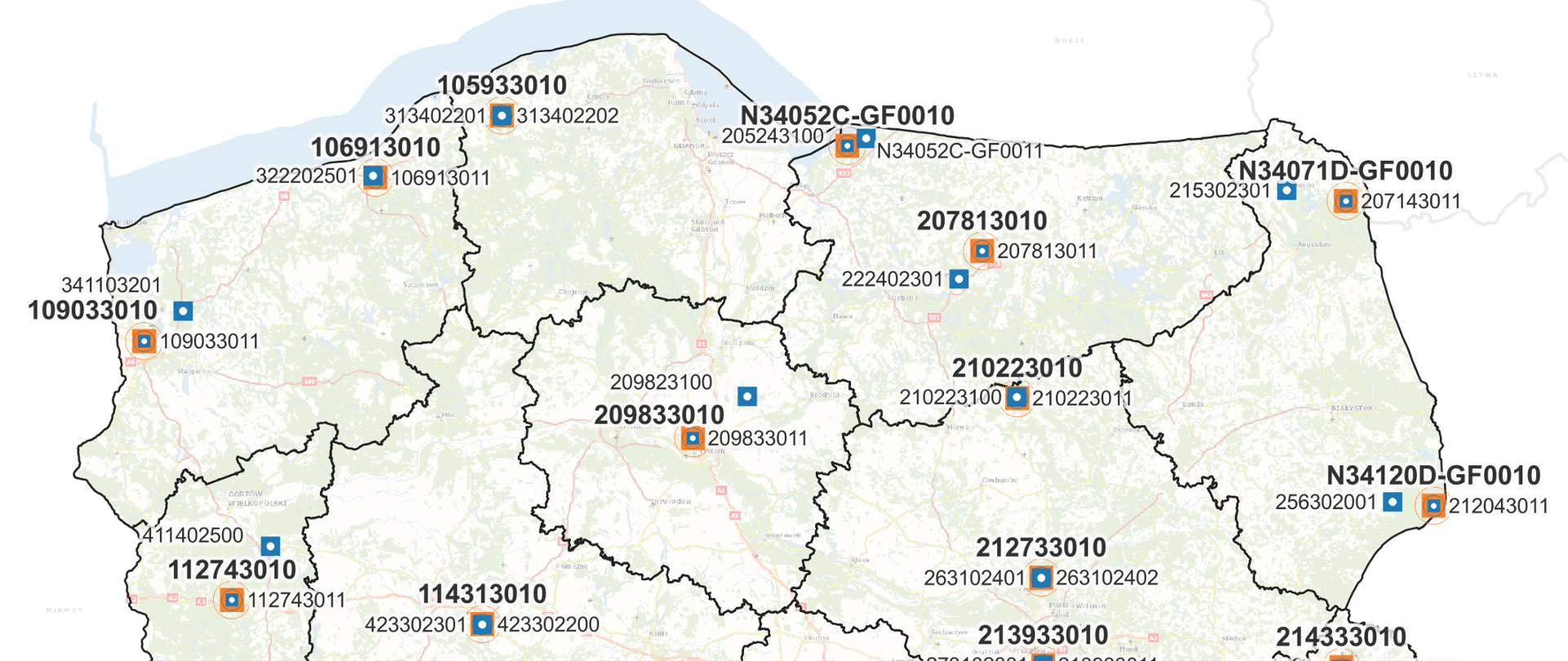 - wykonanie pomiarów gradientu pionowego przyspieszenia siły ciężkości oraz wartości absolutnego przyspieszenia siły ciężkości na 29 punktach fundamentalnej osnowy grawimetrycznej,