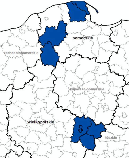 - pomorskiego: bytowski, człuchowski, pucki, wejherowski;