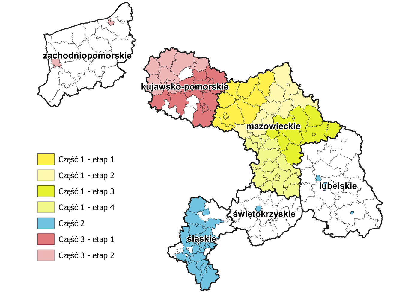 część obszaru województwa zachodniopomorskiego - w granicach miast na prawach powiatu: Koszalin, Szczecin,
