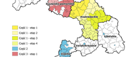 województwa mazowieckiego - w granicach powiatów: białobrzeskiego, ciechanowskiego, garwolińskiego, gostynińskiego, grodziskiego, grójeckiego, kozienickiego, legionowskiego, lipskiego, łosickiego, makowskiego, mińskiego, mławskiego, nowodworskiego, ostrołęckiego, ostrowskiego, otwockiego, piaseczyńskiego, płockiego, płońskiego, pruszkowskiego, przasnyskiego, przysuskiego, pułtuskiego, radomskiego, siedleckiego, sierpeckiego, sochaczewskiego, sokołowskiego, szydłowieckiego, warszawskiego zachodniego, węgrowskiego, wołomińskiego, wyszkowskiego, zwoleńskiego, żuromińskiego, żyrardowskiego oraz miast na prawach powiatu: Ostrołęka, Płock, Radom, Siedlce i Warszawa,