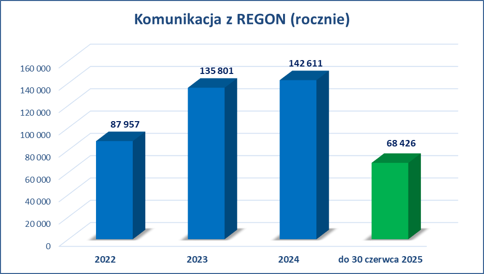co wyraźnie widać w przedstawionych poniżej statystykach dotyczących wykorzystania komunikacji z rejestrami: PESEL, eKW oraz REGON.