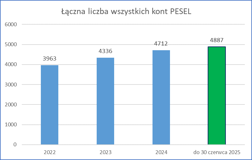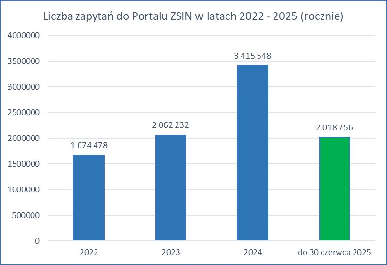 - w pierwszym półroczu 2025 r. założono niemal czterokrotnie więcej kont w portalu ZSIN niż w całym 2024 r. Tak bardzo duży wzrost liczby użytkowników portalu wskazuje na wysokie zapotrzebowanie na funkcjonalności udostępniane przez ten system;