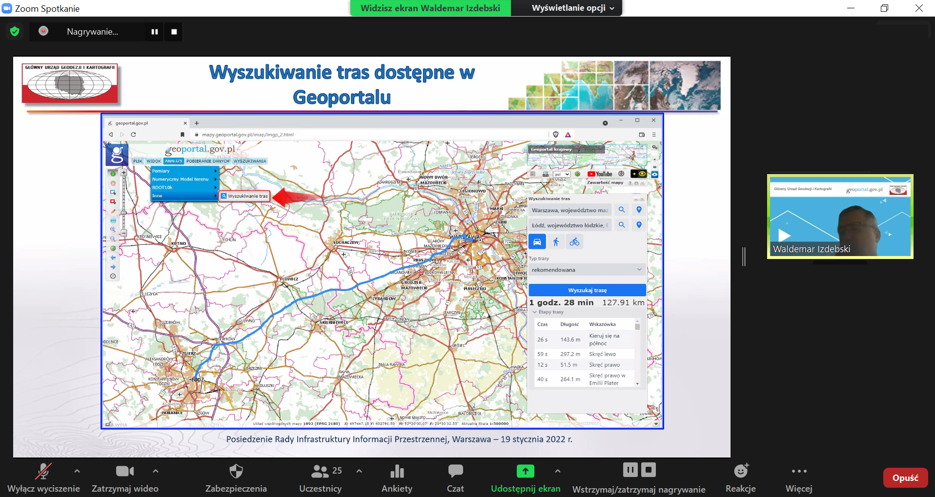 W formie wideokonferencji 19 stycznia 2022 r. odbyło się posiedzenie Rady Infrastruktury Informacji Przestrzennej pod przewodnictwem Głównego Geodety Kraju dr. hab. inż. Waldemara Izdebskiego.
