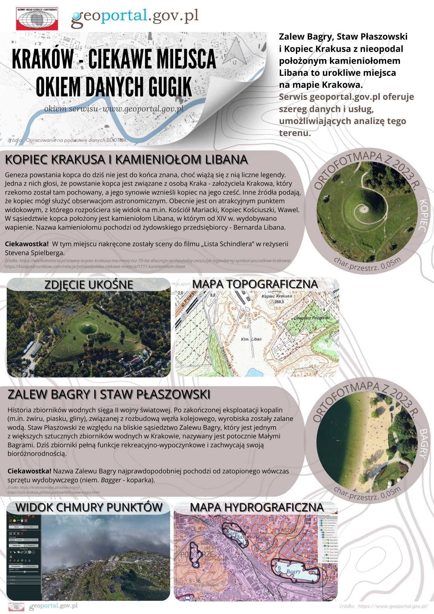 Zgodnie ze wskazaniem jednego z użytkowników, wykorzystując dane dostępne w Państwowym Zasobie Geodezyjnym i Kartograficznym oraz prezentowane w Geoportalu przedstawiamy Państwu kolejne miejsca, które warto zobaczyć w Krakowie i okolicach: