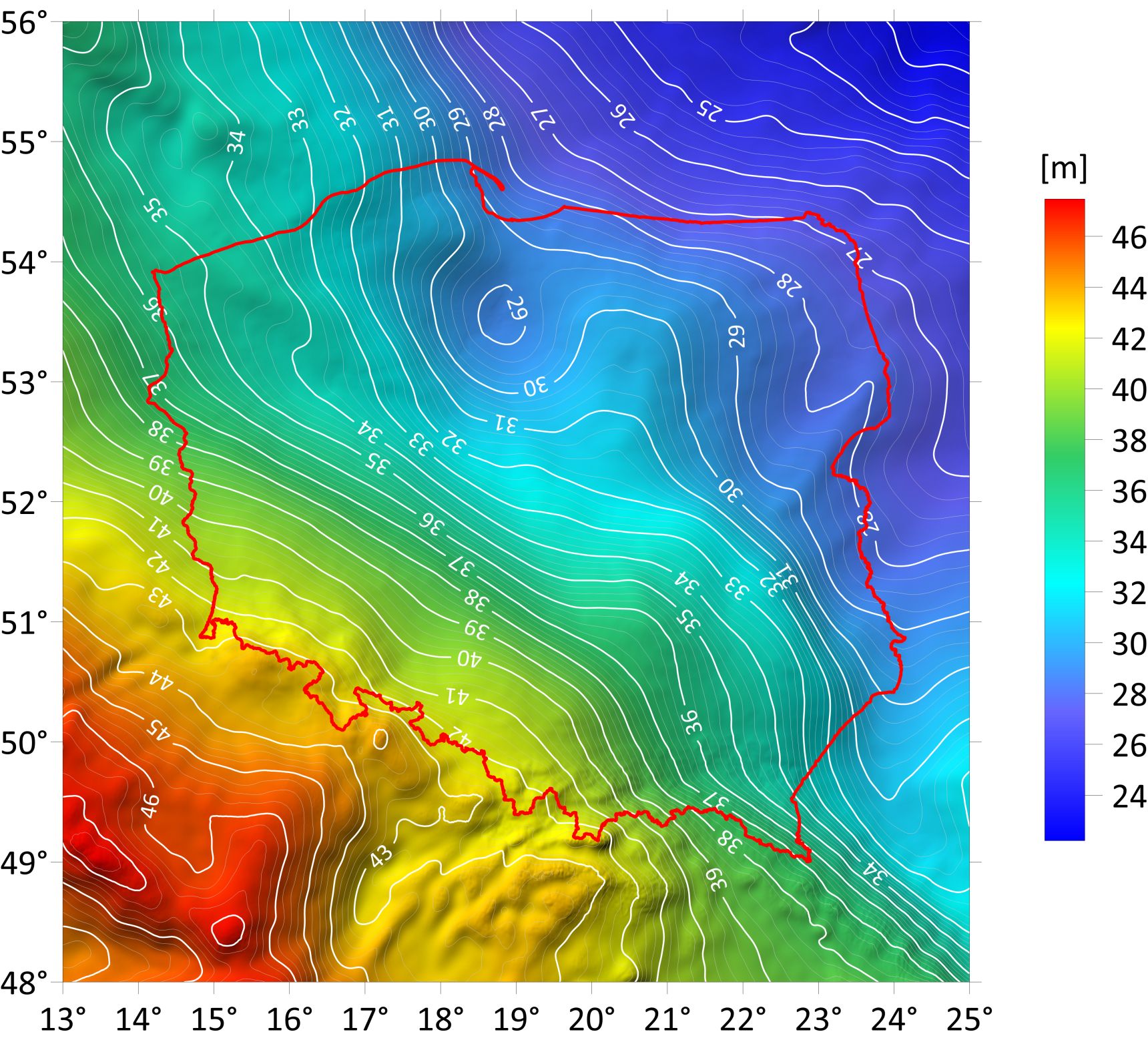 W zasobach sieciowych serwisu geoportal.gov.pl udostępniliśmy nowy model quasi‑geoidy służącej do przeliczeń wysokości elipsoidalnych z układu PL-ETRF2000-GRS80h do wysokości normalnych PL-EVRF2007-NH, opracowany w ramach konkursu zorganizowanego przez Głównego Geodetę Kraju. Autorem nowego modelu jest Uniwersytet Przyrodniczy we Wrocławiu, którego praca - zgodnie z określonymi w Regulaminie Konkursu kryteriami - otrzymała największą liczbę punktów.