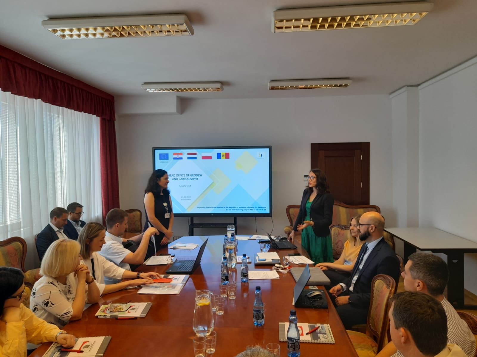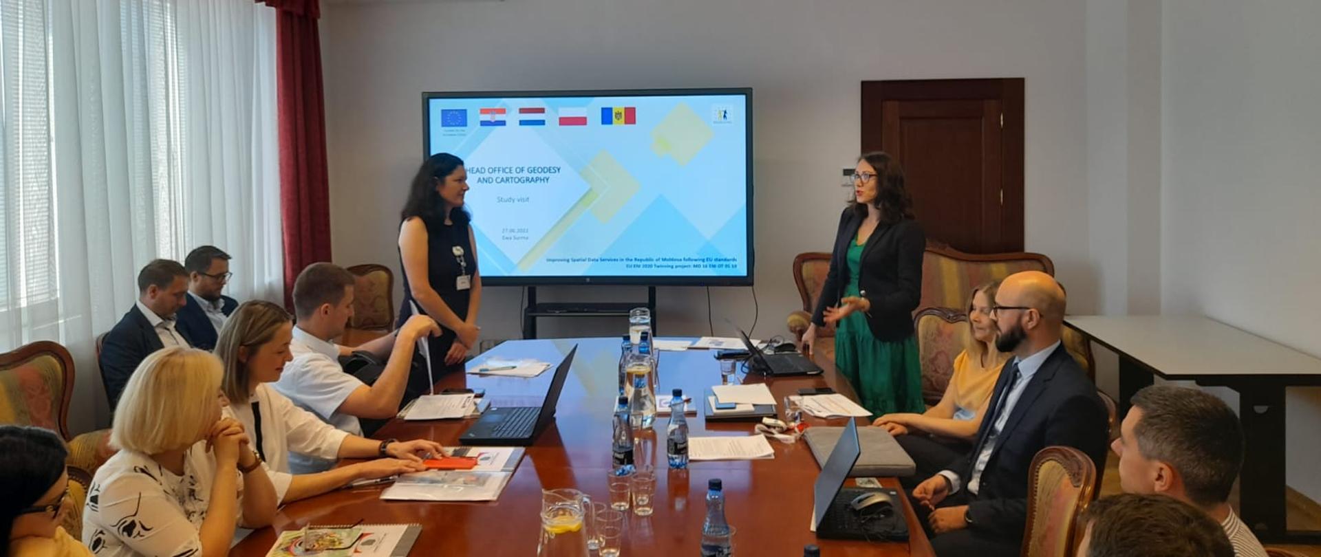 W Głównym Urzędzie Geodezji i Kartografii rozpoczęła się pierwsza wizyta studyjna uczestników projektu współpracy bliźniaczej dla Mołdawii „Improving Spatial Data Services in the Republic of Moldova following EU standards”, który jest realizowany przez konsorcjum: Chorwacja, Holandia oraz Polska. Celem projektu jest rozwinięcie w Mołdawii struktury danych przestrzennych.