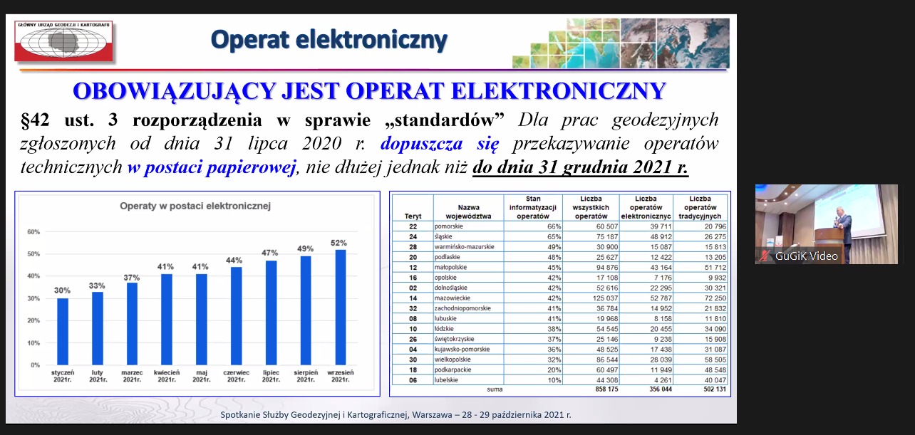 Rozpoczęło się zaplanowane na 28-29 października Spotkanie Służby Geodezyjnej i Kartograficznej w formie hybrydowej. W konferencji zorganizowanej przez Głównego Geodetę Kraju dr. hab. inż. Waldemara Izdebskiego bierze udział ponad 1000 osób - ok. 350 stacjonarnie oraz 650 zdalnie - Wojewódzkich Inspektorów Nadzoru Geodezyjnego i Kartograficznego, Geodetów Województw, Geodetów Powiatowych, Kierowników PODGiK i ich współpracowników.