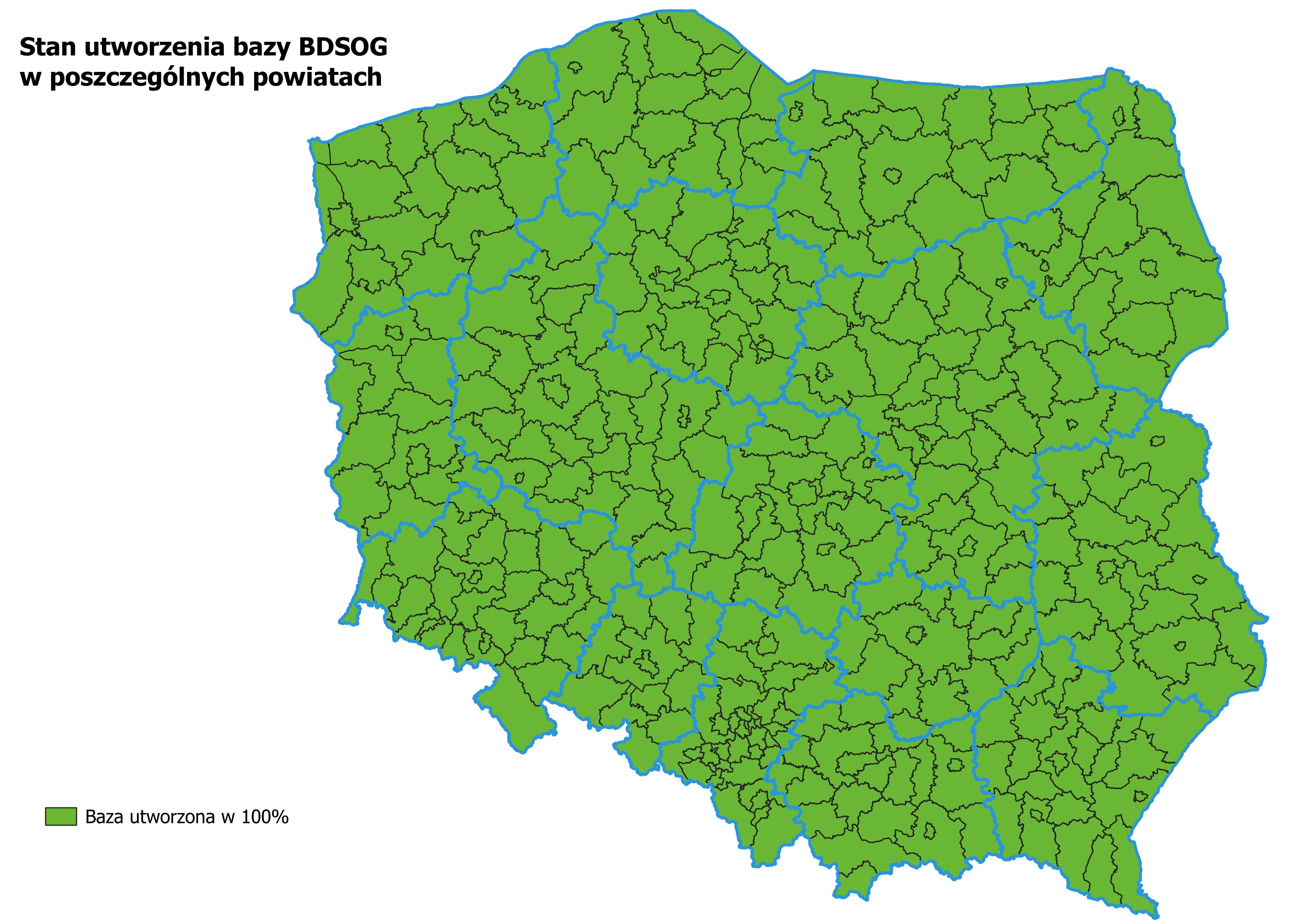- Baza danych BDSOG została założona w 380 powiatach.