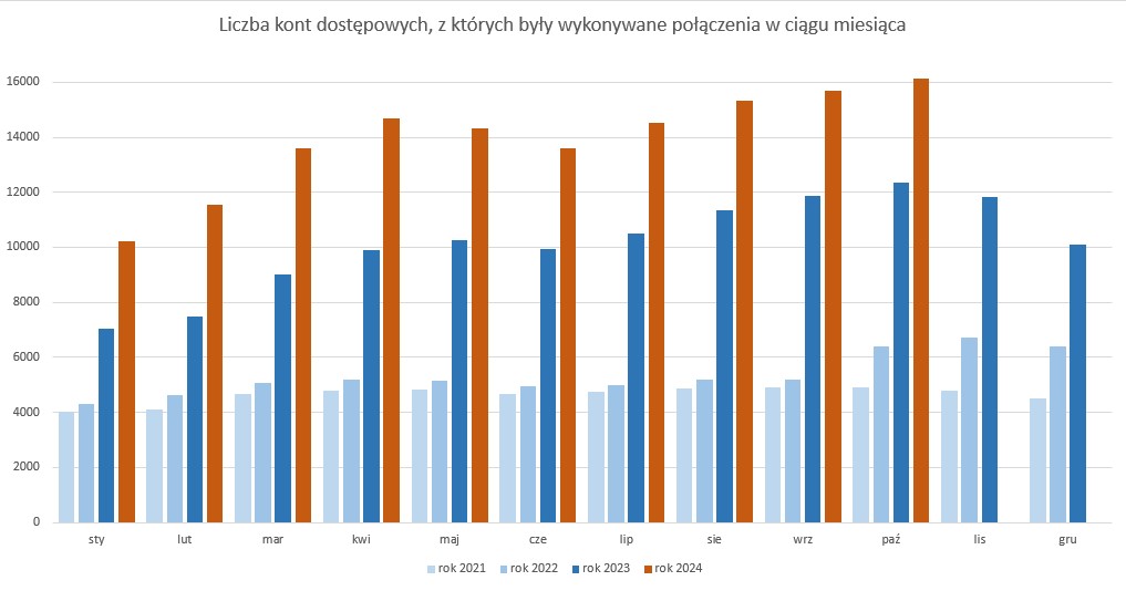 Miesiąc październik był rekordowy pod względem liczby kont dostępowych wykorzystanych do połączeń z usługami czasu rzeczywistego. W październiku zostały wykonane połączenia z 16 142 kont, co stanowi wzrost aż o 3800 kont w porównaniu do października 2023 roku.