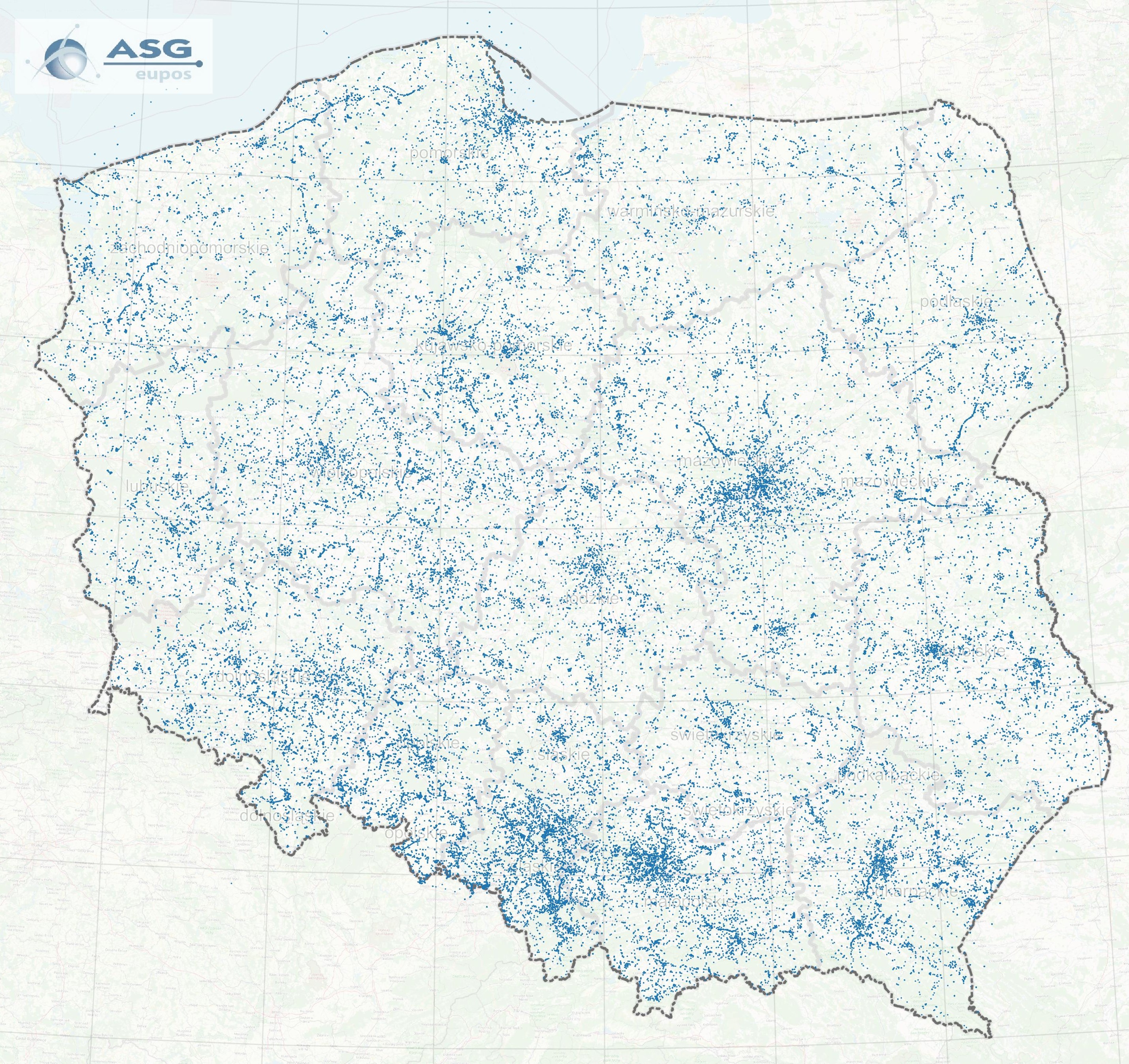 Na mapie prezentującej miejsca wykonywania pomiarów przez użytkowników ASG-EUPOS można zauważyć, że największe wykorzystanie serwisów występuje w rejonie aglomeracji warszawskiej, Górnego Śląska i Małopolski oraz w rejonach dużych miast. Część prac przy dużych inwestycjach drogowych i kolejowych jest również realizowana w oparciu o system ASG-EUPOS. Na mapie można dostrzec takie inwestycje jak budowa autostrady A2 na odcinku Siedlce Południe-Malinowiec, czy drogi ekspresowej S19 „Via Carpatia”, linii kolejowej Białystok-Warszawa czy drogi ekspresowej S6 na Pomorzu.