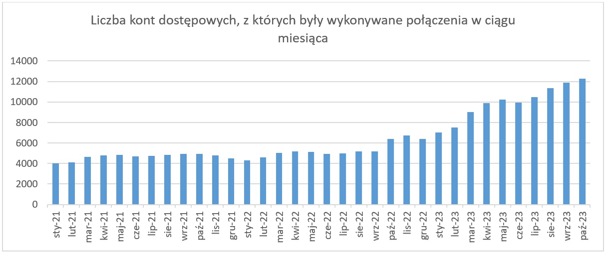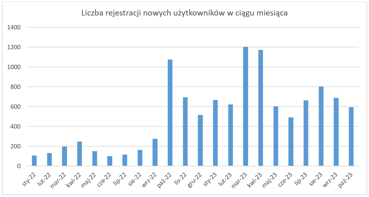 W październiku, kolejnych 600 użytkowników zarejestrowało się w systemie ASG-EUPOS i tym samym liczba zarejestrowanych użytkowników przekroczyła już 27 tysięcy. Wraz ze wzrostem liczby zarejestrowanych użytkowników systematycznie rośnie liczba kont dostępowych, za pomocą których realizowane są połączenia z usługami systemu. W październiku liczba kont dostępowych wykorzystanych do połączeń przekroczyła 12 tys., co pokazuje jak szerokie grono użytkowników korzysta z systemu.