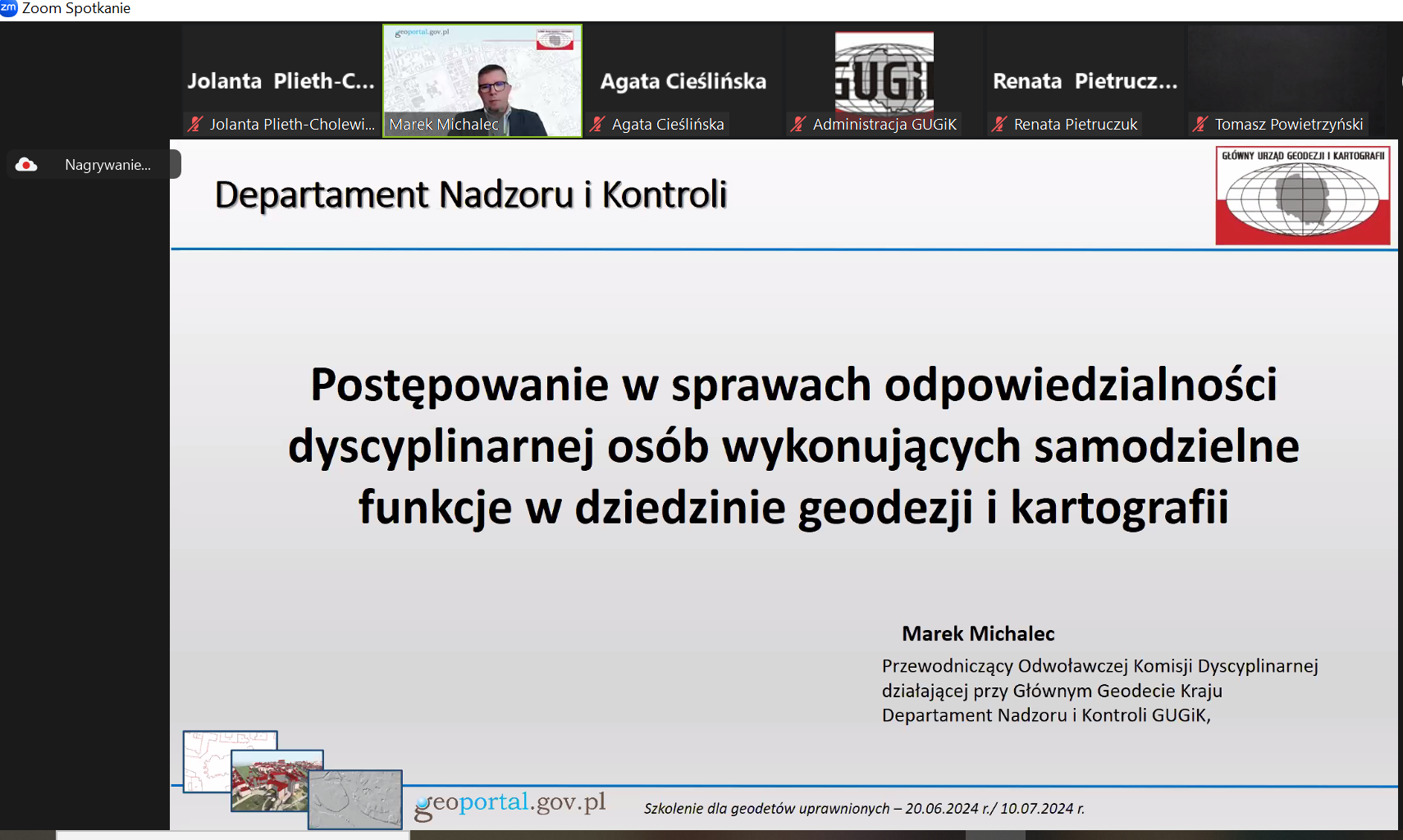 Z inicjatywy Głównego Geodety Kraju Alicji Kulki 20 czerwca 2024 r. odbyło się pierwsze z zapowiedzianych szkoleń dla geodetów uprawnionych, w którym wzięło udział ponad 500 osób. Podczas szkolenia omówiono kwestie dotyczące wątpliwości interpretacyjnych dotyczących stosowania przepisów prawa w dziedzinie geodezji i kartografii na podstawie najczęściej zadawanych pytań Głównemu Geodecie Kraju. Przedstawiono również zagadnienia dotyczące odpowiedzialności dyscyplinarnej osób z uprawnieniami do wykonywania samodzielnych funkcji w dziedzinie geodezji i kartografii.