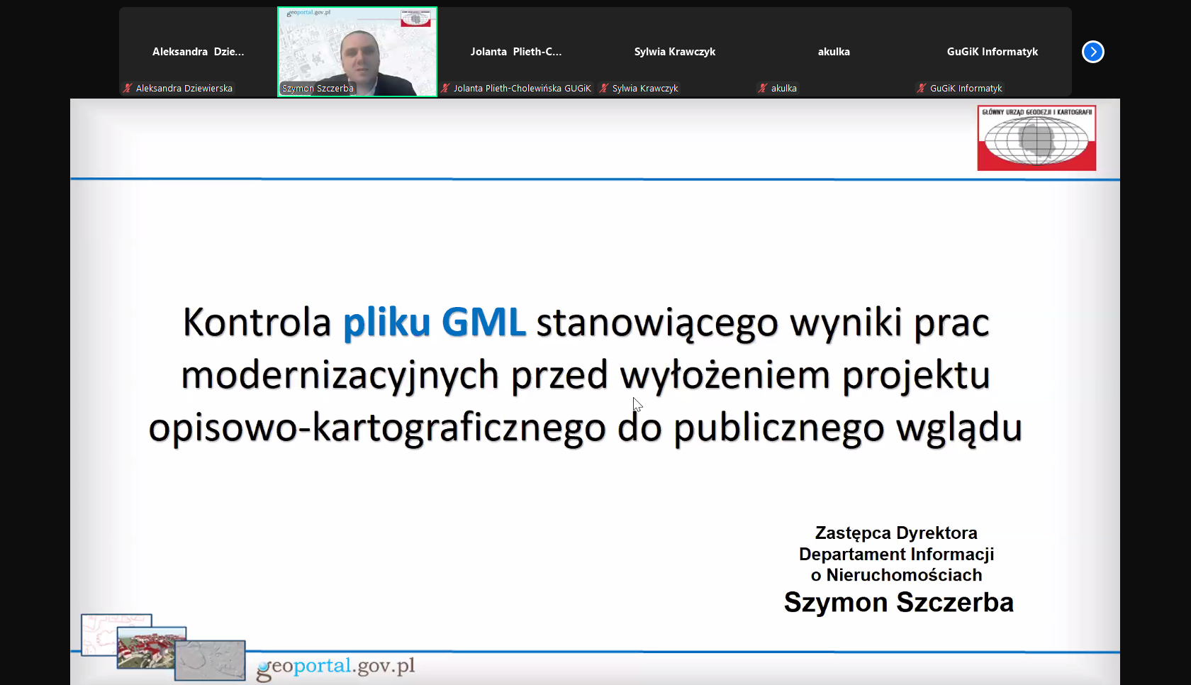 Oprócz tematów ściśle związanych z procedurą modernizacji ewidencji gruntów i budynków przedstawiono zagadnienia dotyczące kontroli pliku GML, który jest wynikiem prac modernizacyjnych przed wyłożeniem projektu opisowo-kartograficznego do publicznego wglądu.