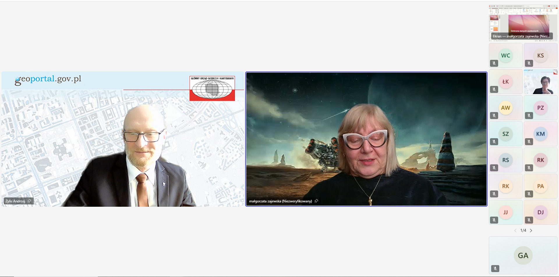 30 stycznia 2026 r. odbyło się coroczne szkolenie online dla członków Komisji kwalifikacyjnej do spraw uprawnień zawodowych w dziedzinie geodezji i kartografii, działającej przy Głównym Geodecie Kraju. Podczas szkolenia z udziałem Głównego Geodety Kraju, przedstawiona została prezentacja, podczas której Joanna Parda – pracownik Wydziału Kwalifikacji Zawodowych Departamentu Nadzoru i Kontroli GUGiK, Przewodnicząca Komisji kwalifikacyjnej, omówiła przepisy dotyczące postępowań kwalifikacyjnych prowadzonych wobec osób ubiegających się o nadanie uprawnień zawodowych w dziedzinie geodezji i kartografii.