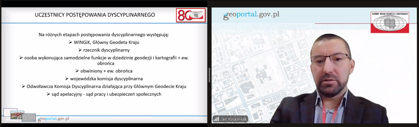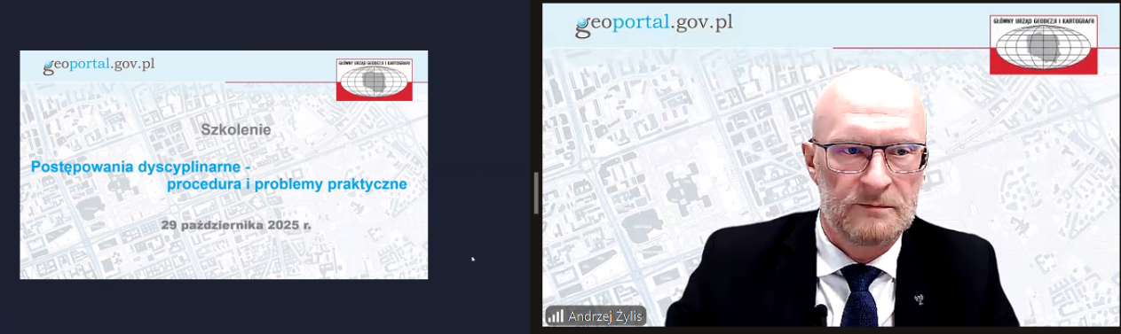 Ponad 100 osób wzięło udział w zorganizowanym przez Główny Urząd Geodezji i Kartografii 29 października 2025 r. szkoleniu online „Postępowanie dyscyplinarne – procedura i problemy praktyczne”, przeznaczonym dla rzeczników dyscyplinarnych i członków komisji dyscyplinarnych.