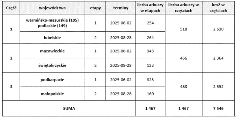 W ramach działań związanych z tworzeniem, prowadzeniem i udostępnianiem bazy zobrazowań lotniczych i satelitarnych oraz ortofotomapy i numerycznego modelu terenu, Główny Geodeta Kraju podpisał umowy na opracowanie danych fotogrametrycznych: