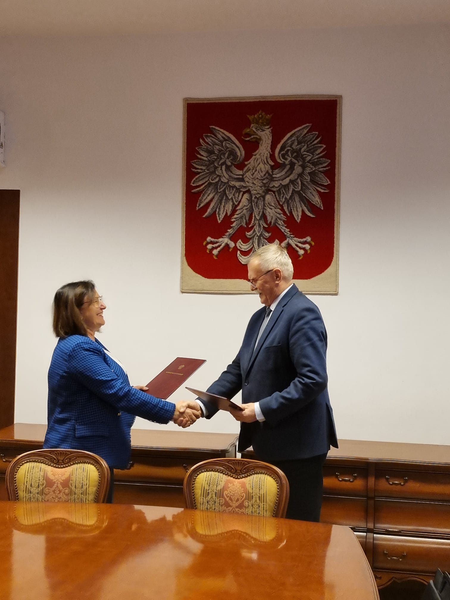 Porozumienie o wzajemnej współpracy podpisali 16 stycznia 2023 r. p.o. Główny Geodeta Kraju Alicja Kulka z dyrektorem Instytutu Uprawy Nawożenia i Gleboznawstwa – Państwowego Instytutu Badawczego profesorem Wiesławem Oleszkiem.